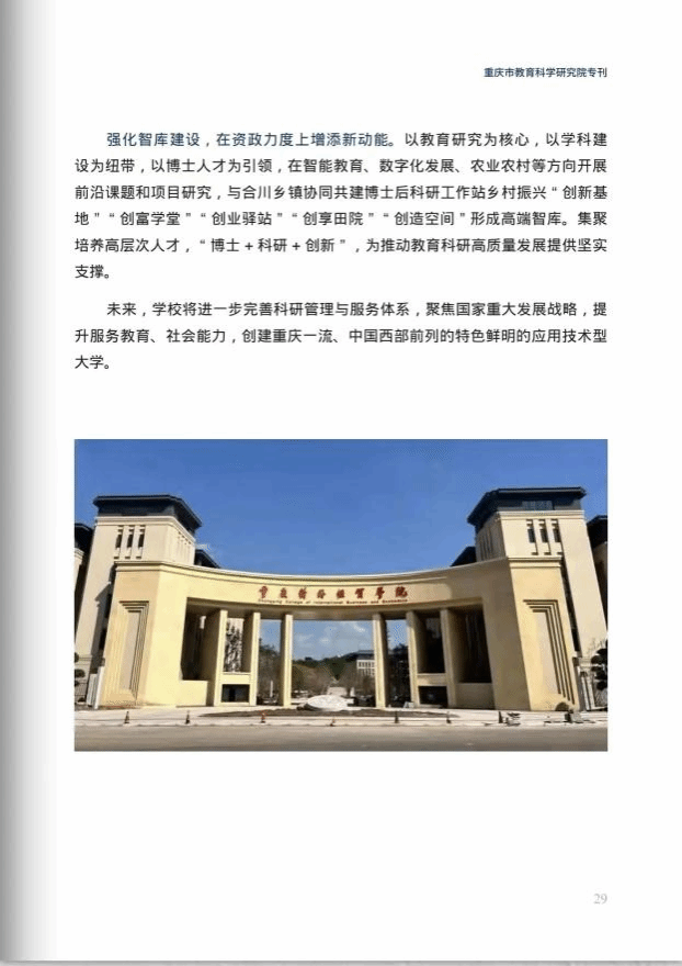 2024年5月15日,重庆市教育智库联盟《教育智库》专刊发表《yl23411永利(集团)有限公司官网:强化四个建设,推动教育科研提质增效》科研建设成果报道。培元致新,学校以高质量科研支撑重庆教育强市、激活重庆建设新动能。