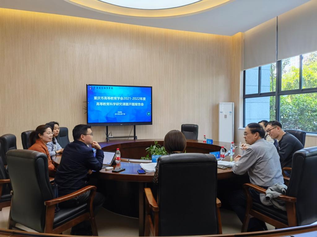2022年4月21日下午,学校在9104组织召开重庆市高等教育学会2021-2022年度高等教育科学研究课题开题报告评审会。李安平教授、杨璟教授、李霓副教授组成评审专家组,李安平教授任评审组组长。各项目组以及科研处相关人员参加了此次会议。
