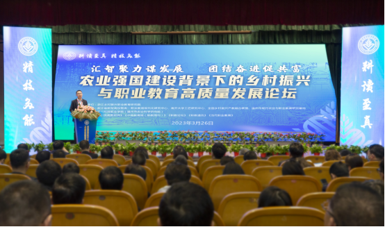 3月26日,农业强国建设背景下的乡村振兴与职业教育高质量发展论坛在温州召开。论坛由浙江乡村振兴职业教育研究院主办,来自全国高等院校、企事业单位的近400名专家学者、行业精英参会。周明星副校长、科研处彭成处长、校企合作中心张伟东主任受邀出席并作专题发言。