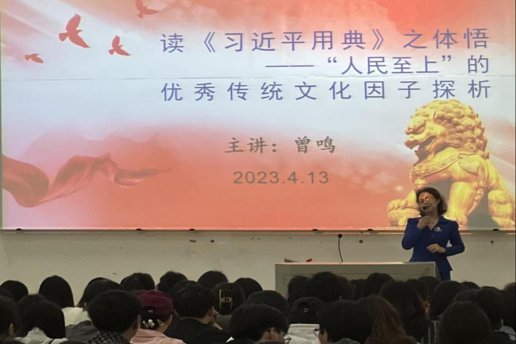时值第28届“4.23”世界读书日来临之际,图书馆邀请马克思主义学院曾鸣副教授开展了学校第三届读书月系列活动的首场学术讲座,即《读<习近平用典>之体悟——“人民至上”的优秀传统文化因子初探》。本次讲座于4月13日下午在合川A校区阶梯教室6116举行,近400名师生参加。