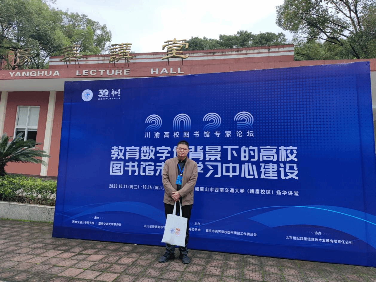2023年10月12日,2023 年川渝高校图书馆“专家论坛”在西南交通大学峨眉校区隆重举行,本次论坛主题为“教育数字化背景下的高校图书馆未来学习中心建设”。来自四川、重庆等地62所高校的近200名业界知名专家、图书馆馆长和行业同仁参加了此次会议,共同探讨教育数字化背景下高校图书馆转型发展,为高校图书馆未来学习中心建设提供新理念、新思路和新的解决方案。我校图书馆副馆长叶甬渝代表我校参加了此次会议。