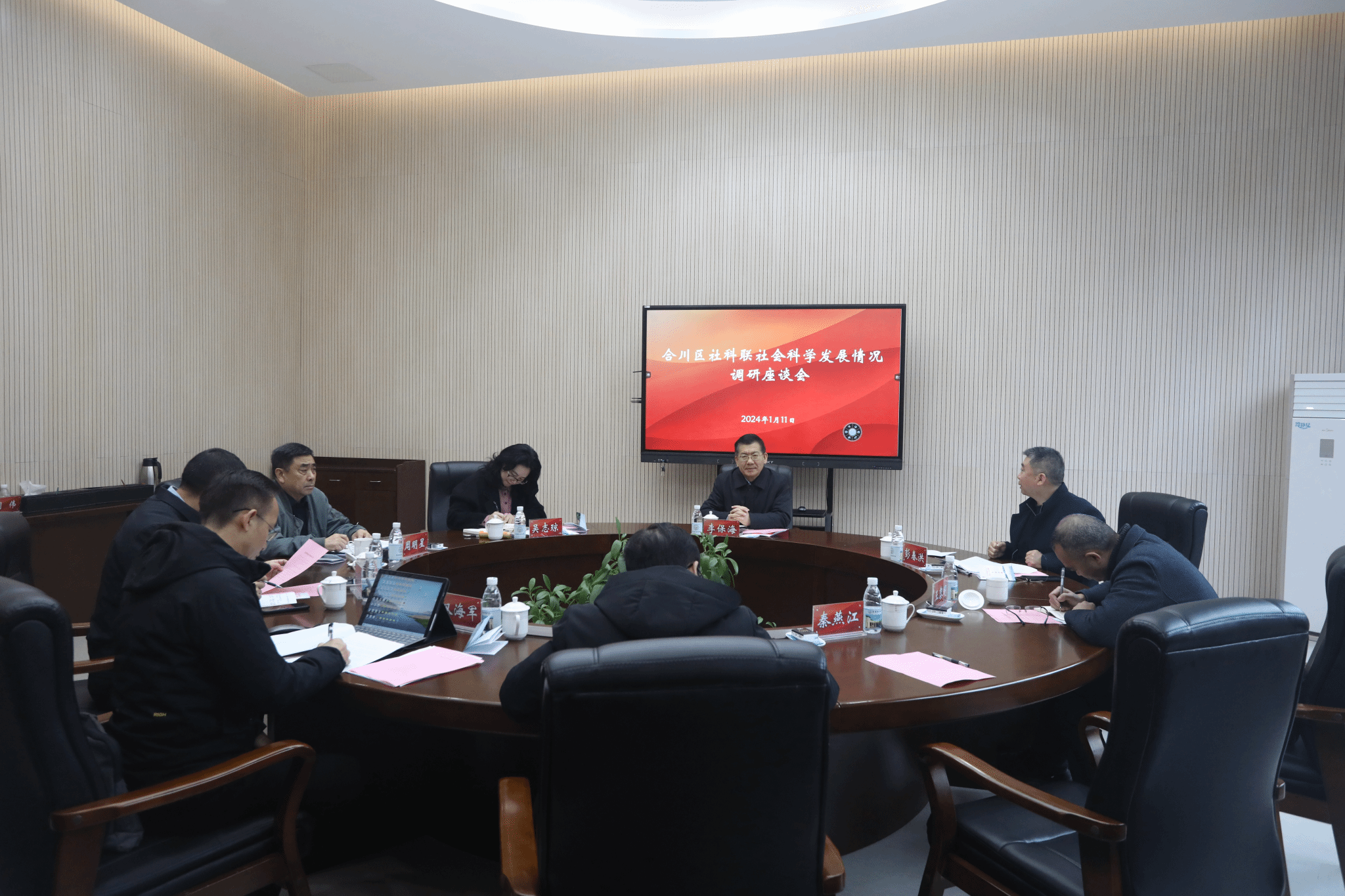 2024年1月11日,重庆市社科联党组书记、副主席李保海一行来我校调研并出席合川区社会科学发展情况调研座谈会。