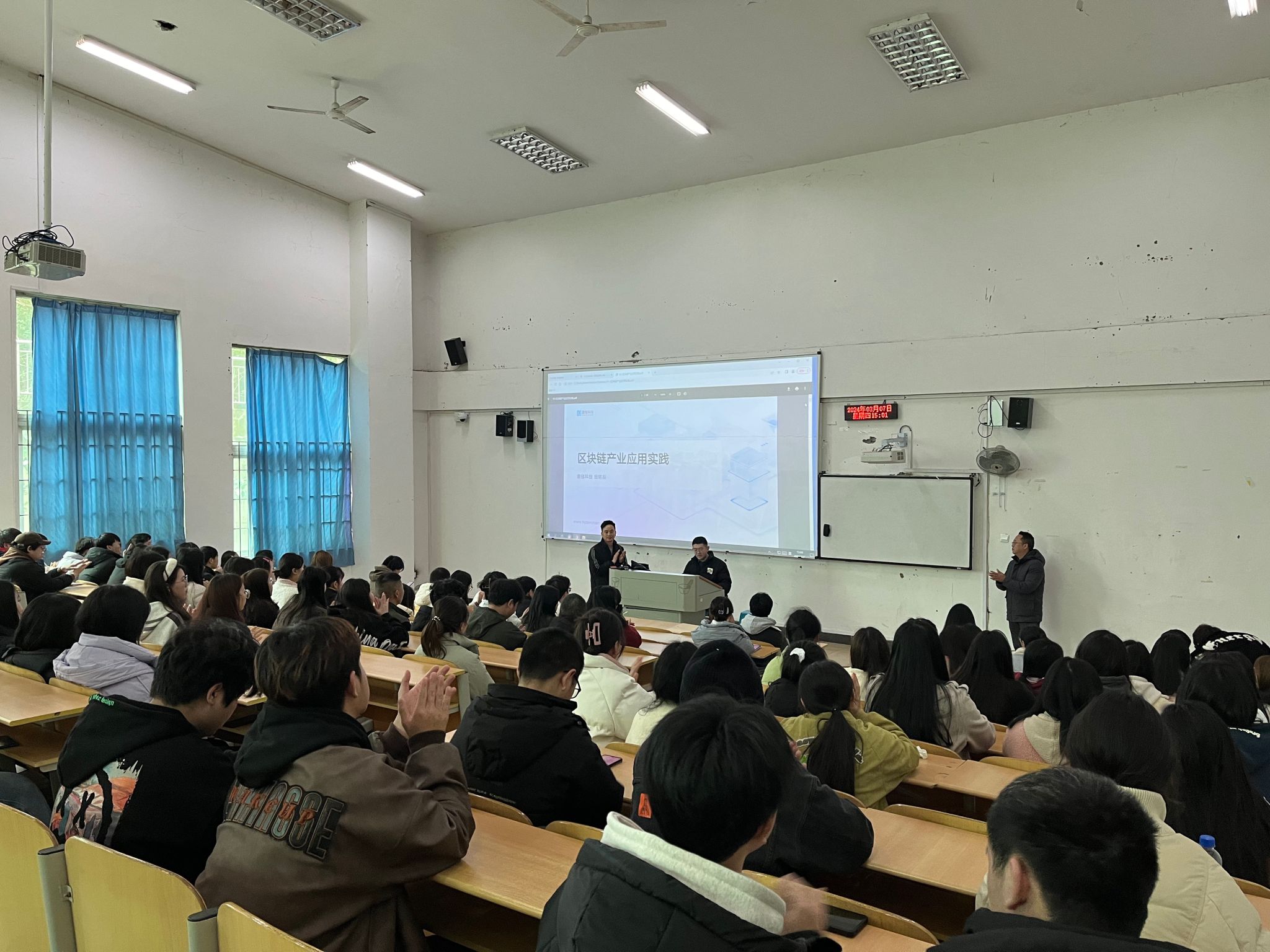 在互动环节,学生们积极提问,就区块链技术的未来发展、应用场景拓展以及技术挑战等问题与主讲嘉宾进行了深入的交流。这种积极的互动不仅增强了学生们对区块链技术的认识,也激发了他们对区块链产业应用实践的兴趣和热情。
