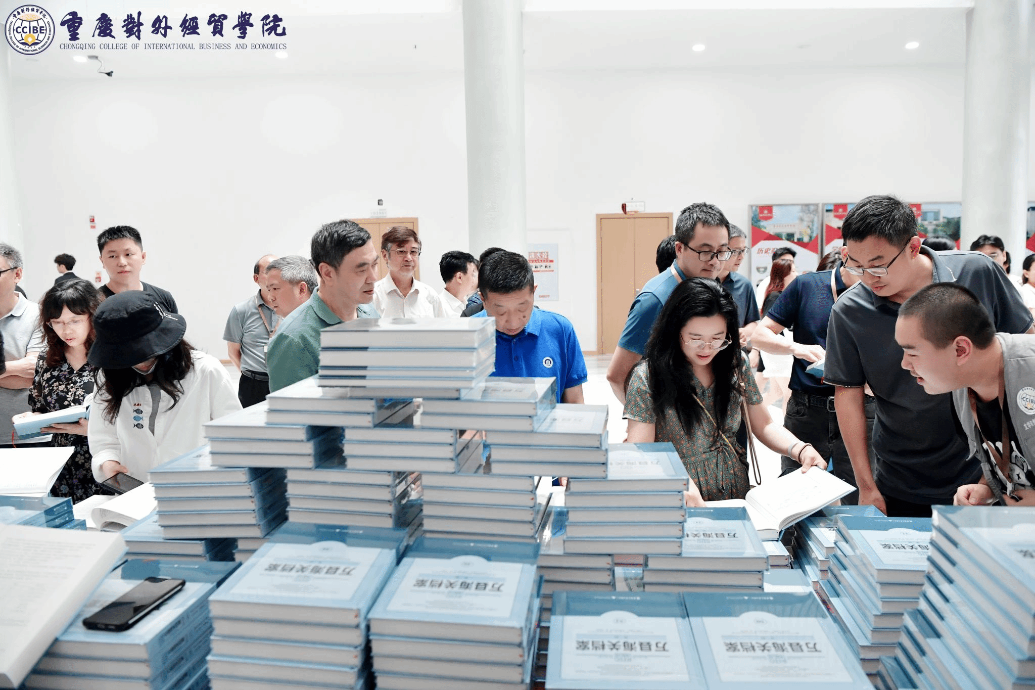 现场观众阅读新发布的文献档案书籍