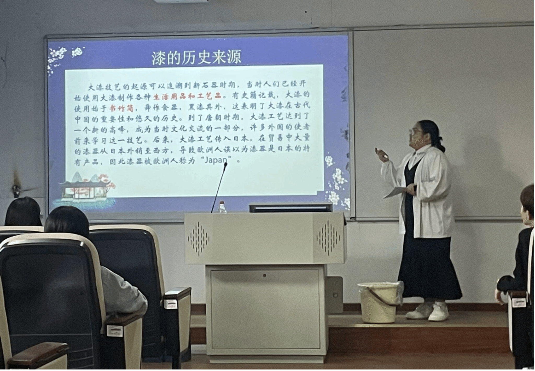 随后,陈珑婧同学上台向大家展示其在非遗文化学习中的成果与心得——漆扇。她将漆扇的制作带到了现场,向同学们展现了非遗技艺的精湛与细腻,以及非遗文化的独特韵味。