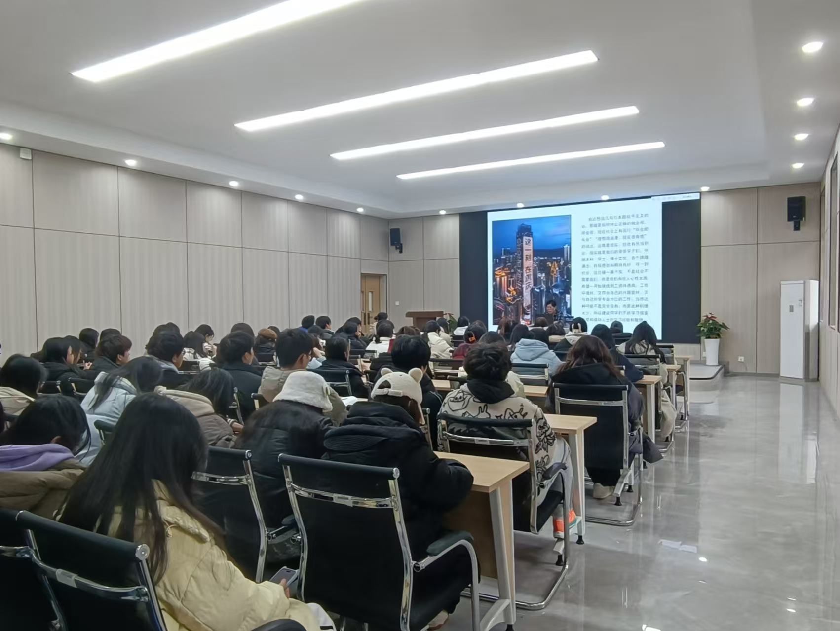 张士海老师一开场,便以苗家人房屋的文化特色为引子,带领大家领略了其独特的建筑风格与蕴含的民族智慧。紧接着,他讲述了林清玄从普通记者成长为文学大家的人生故事,用这两个鲜活的案例,生动诠释了“从底层出发,从小事做起”的职场智慧,为同学们指明了职场成长的方向。