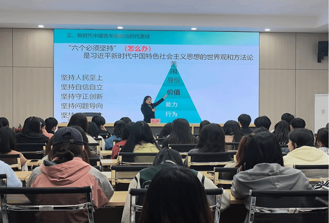 图为罗驰副书记为同学们讲解金字塔理论