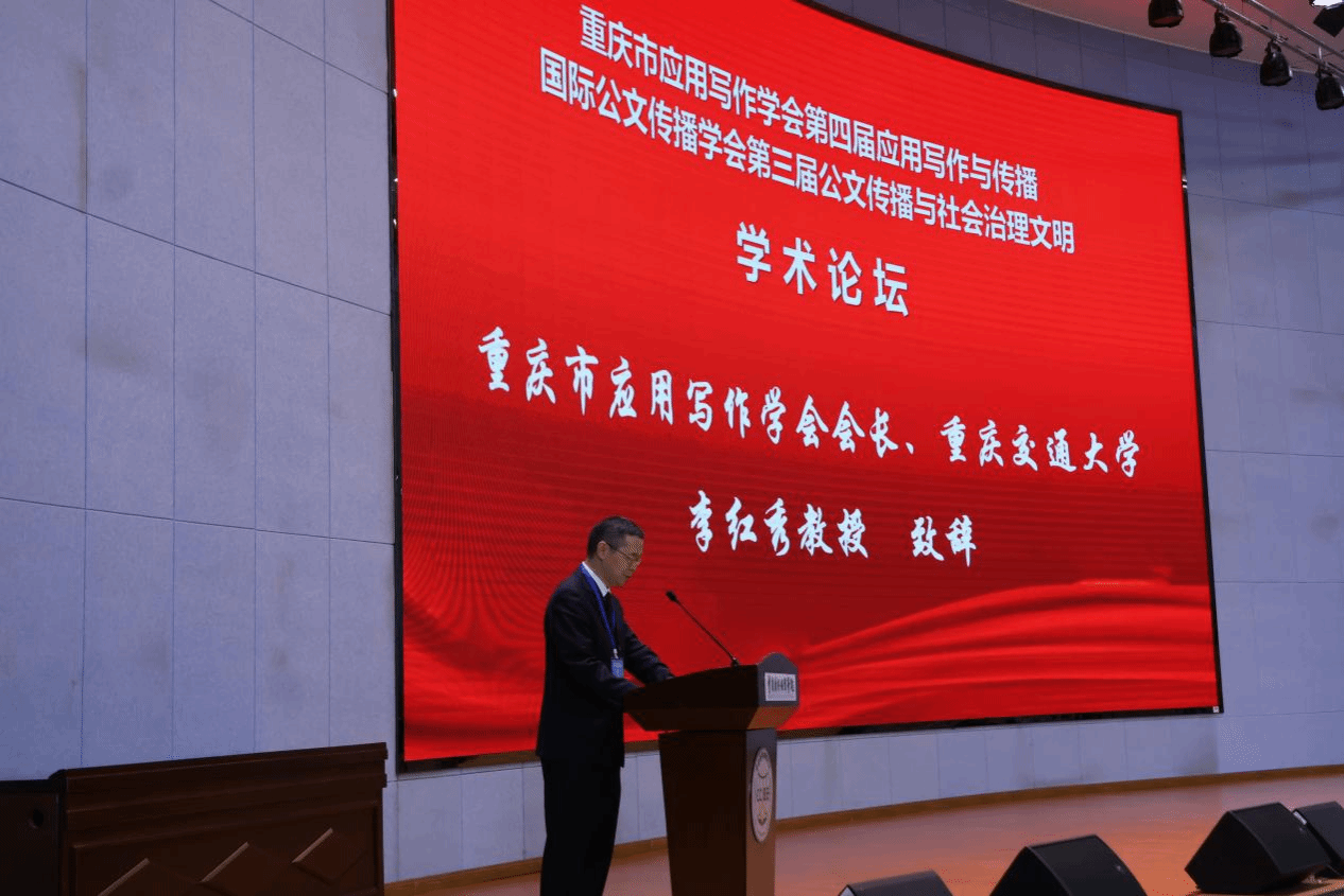 (重庆市应用写作学会会长、重庆交通大学李红秀教授致辞)
