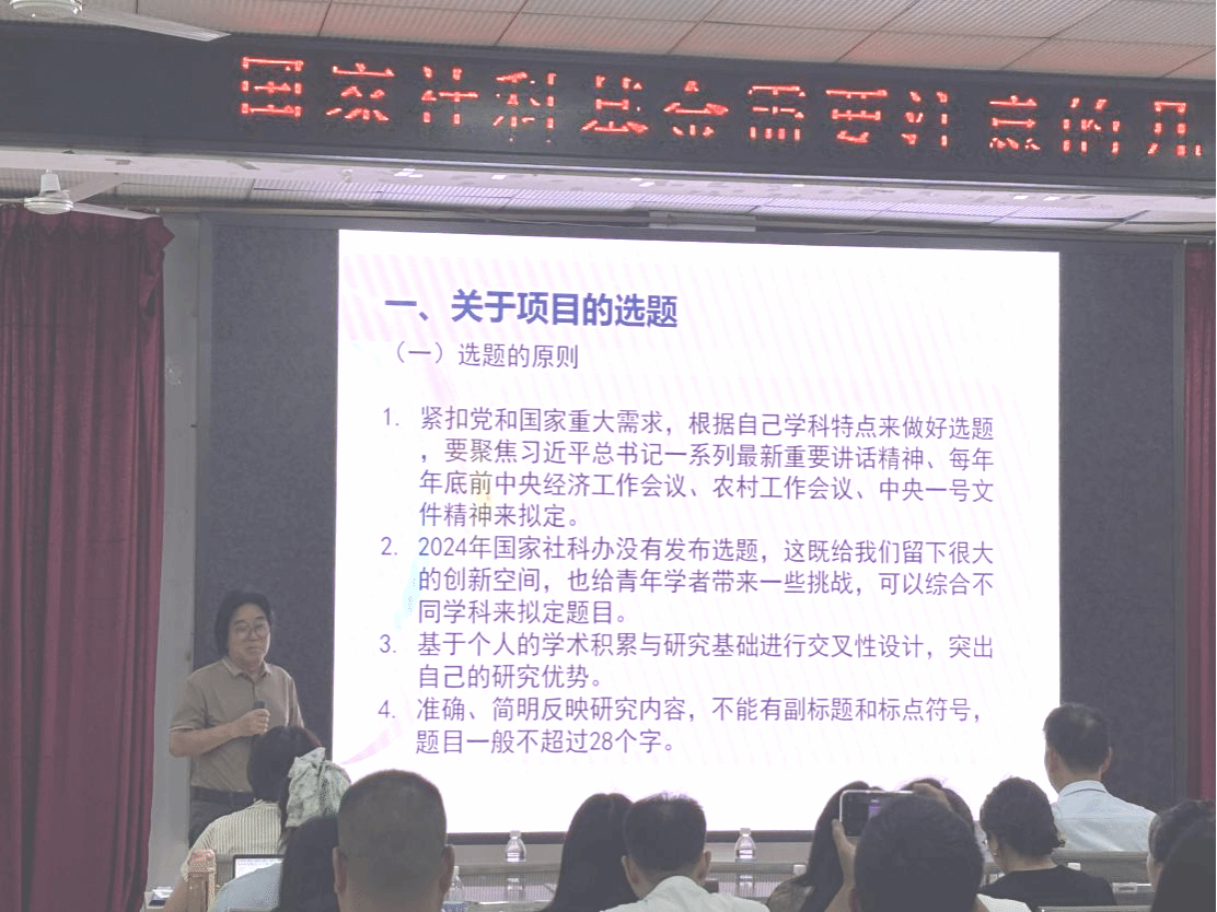 王志章教授紧紧围绕国家社科基金申报的关键环节,凭借丰富的经验和独到的见解,系统地剖析了选题方向的核心要点,从精准选题到标准范式,结合最新政策导向与评审标准,毫无保留地分享了如何规避选题同质化、论证薄弱等常见问题的实战经验,为在场教师提供了极具价值的指导。