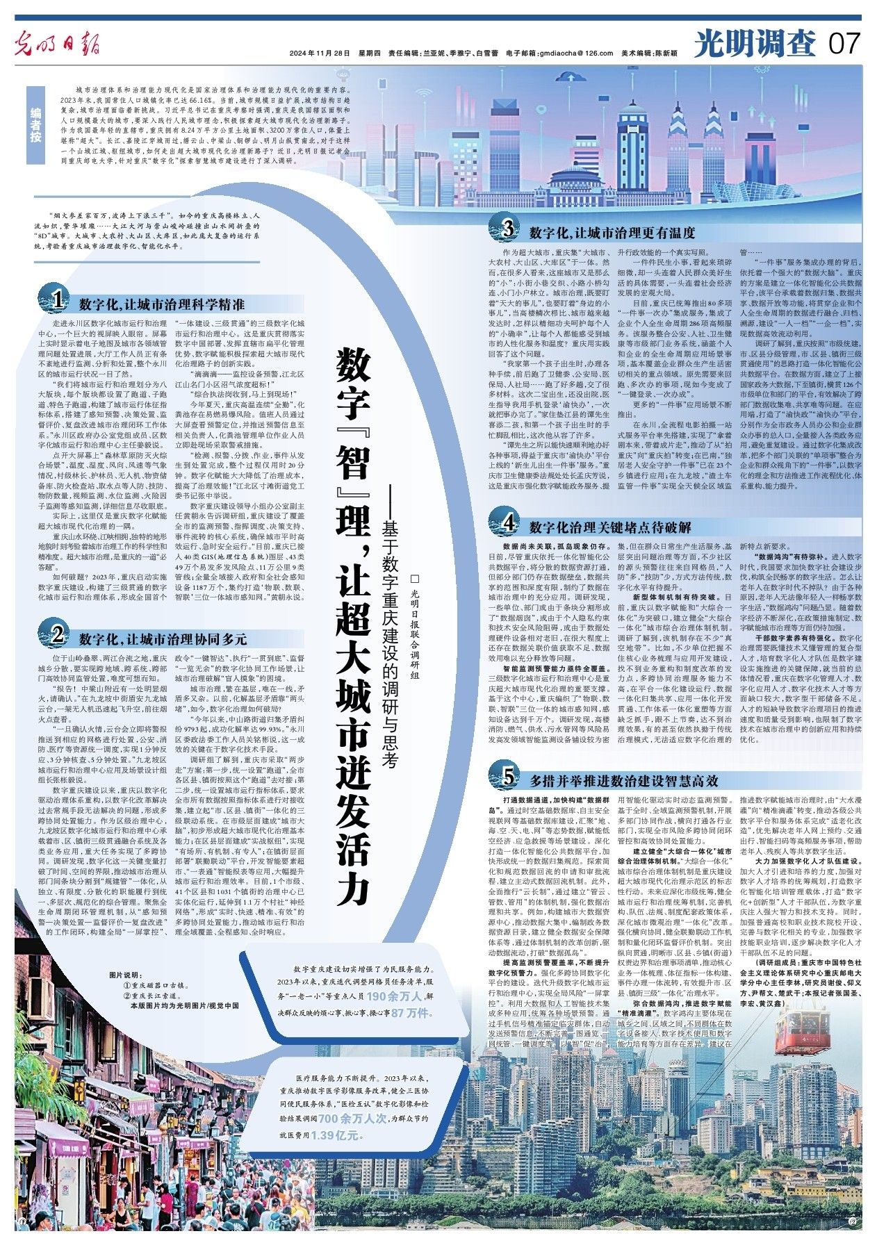 数字“智”理,让超大城市迸发活力 ——基于数字重庆建设的调研与思考-光明日报-光明网(gmw.cn)