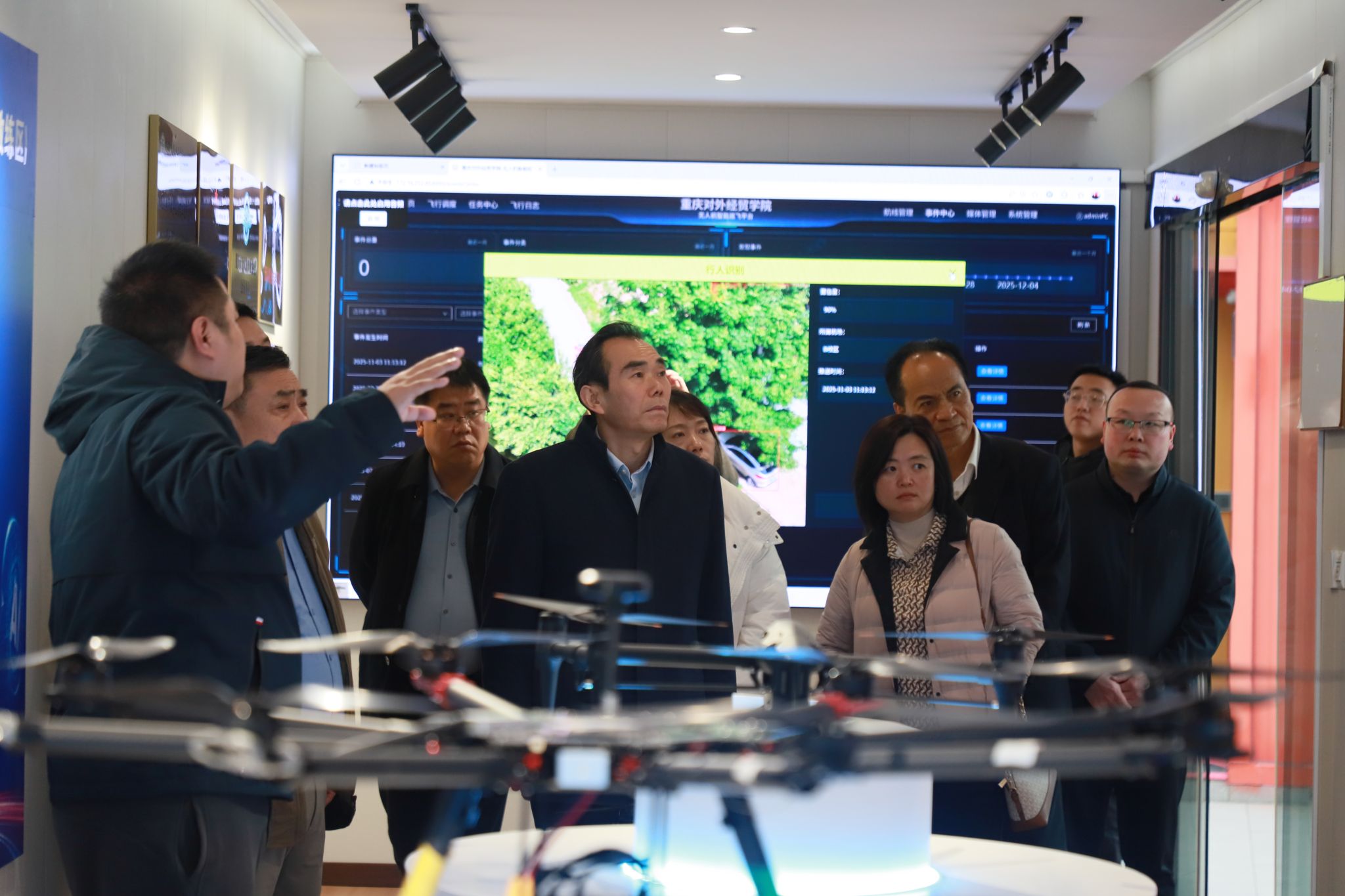 当日下午,在周明星副校长陪同下,西京学院一行深入各考察点,先后考察低空经济行业应用飞行基地、京东数字经贸产业学院、教育大数据治理与应用中心。通过实地察看、现场交流等方式,详细了解了我校在低空经济应用、数字经贸产教融合、教育大数据治理等领域的建设成果、运营模式及人才培养特色。西京学院对我校产教融合的深度实践、学科专业与产业需求的精准对接给予高度评价,认为我校在相关领域的探索经验具有重要借鉴意义。
