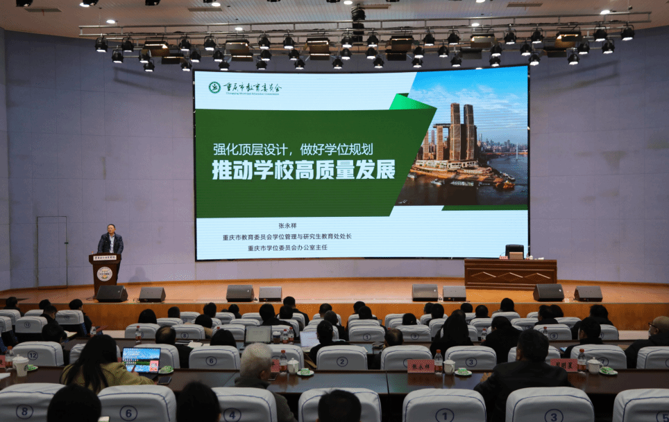 学位管理与研究生教育处干部唐筝对硕士学位授予单位申报流程及注意事项进行了细致的解释。她强调,要聚焦重点难点,精准靶向发力,抢抓有效时间,加大工作力度,保证材料真实有效,补齐短板弱项,切实提高申报硕士授予单位的竞争力。张永祥处长对我校学科建设取得的成绩和研究授予单位申请前期准备工作给予肯定。他提出三点建议:一是深化认识、把握大势。锚定国家一流学科突破,切实把思想和行动统一到党中央的决策部署与市政府的工作要求上来,学科建设要服务于重庆市“416”科技创新布局和“33618”现代制造业集群体系建设。二是聚焦重点、精准发力。对标对点解决申硕的差距与短板,全面提升硕士学位授权点工作的质量和成效。三是团结协作,担当实干。全校上下要凝心聚力、抢抓机遇、乘势而为,突出学科建设重点、优化学科专业结构、提升人才培养质量。